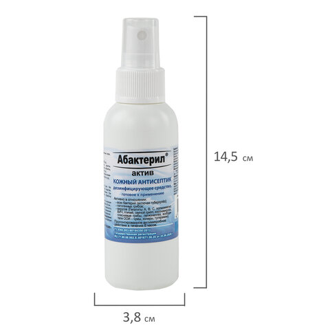 Дезинфицирующее средство в качестве действующих веществ содержит: изопропиловый спирт – 64,0% алкилдиметилбензиламмоний хлорид - 0,1%, полигексаметиленгуанидина гидрохлорид - 0,1%, увлажняющие, ухаживающие за кожей компоненты и функциональные добавки.