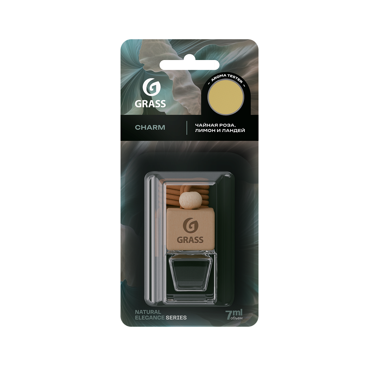 Ароматизатор жидкий подвесной серии Grass Charm. Свежий аромат лимона плавно сочетается с нежными нотами чайной розы и лёгкими оттенками ландыша. Сначала раскрываются яркий цитрусовый запах, который постепенно переходит в мягкий цветочный шлейф с весенними мотивами. Не содержит спирта.
