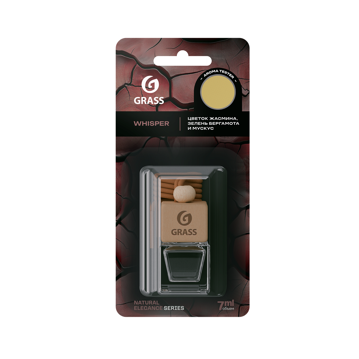 Ароматизатор жидкий подвесной серии Grass Whisper. Акценты цветочных нот и тонкого мускуса, подчеркнутые свежестью бергамота. В начале раскрывается легкость цветка жасмина, плавно переходящая в бархатистые мускусные оттекни, а завершается цитрусовой нотой. Не содержит спирта.