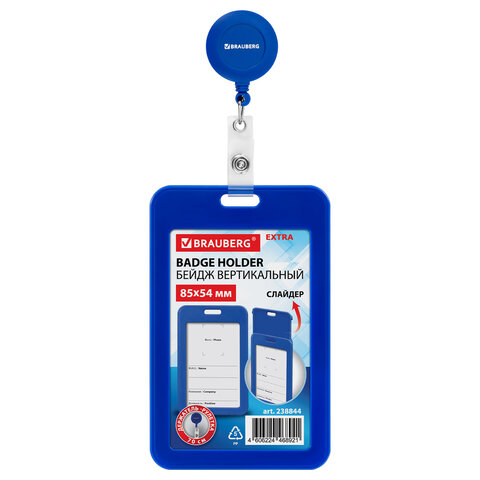 Вертикальный бейдж с рулеткой BRAUBERG для хранения тонких пропусков, карточек, ID-карт, проездных и банковских карт. Бейдж-слайдер с держателем-рулеткой 70 см. Изготовлен из жесткого пластика, гарантирующего долгий срок службы и защищающего от внешних воздействий Вашу именную карту. Идеально подойдёт для чувствительных к механическим повреждениям магнитных карт и пропусков. Держатель-рулетка оснащен клипсой, благодаря которой его можно с лёгкостью закрепить на поясе или любом другом элементе одежды. Размер вкладыша – 85х54 мм. Максимальная толщина пропуска – 1 мм (одна стандартная банковская карта). *Вкладыш бейджа без персонализации, на изображении показан возможный пример использования изделия. Бейджи BRAUBERG и всё для эффективной организации рабочего процесса – в нашем ассортименте! Успейте заказать!