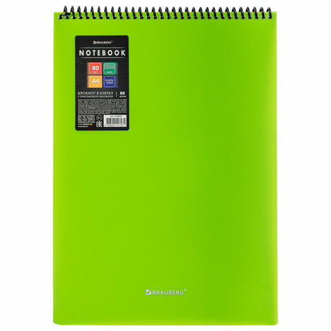 Блокнот БОЛЬШОГО ФОРМАТА А4, 80 л., обложка пластик, клетка, BRAUBERG «Metropolis», ЗЕЛЕНЫЙ