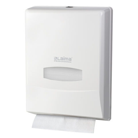 Диспенсер для бумажных полотенец LAIMA PROFESSIONAL подходит для использования в местах с любой проходимостью, таких как туалетная комната в ресторане, офисе, торговом центре, аэропорту и т. д. Отличается высокими эксплуатационными характеристиками. Антивандальный корпус изготовлен из ударопрочного ABS-пластика, позволяет использовать две пачки полотенец interfold, Z- и W-сложения. Обеспечивает высокий уровень гигиены и комфортную подачу полотенец. Имеется окошко для контроля остатка полотенец. Сочетается с расходными материалами других производителей. Оборудован самозахлопывающимся замком с ключом. В комплект входят крепежные материалы для установки. Размер - 351х253х112 мм