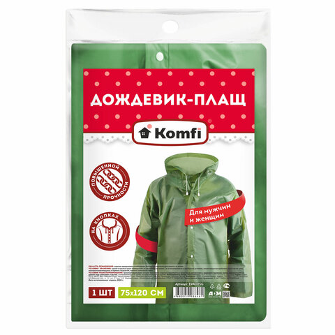 Плащ-дождевик KOMFI из материала EVA предназначен для отдыха на природе, рыбалке, пикника и городских прогулок. Материал настолько плотный (150 мкм), что может прослужить несколько сезонов. Универсальный зеленый цвет подойдет и мужчинам, и женщинам. Покупайте универсальные дождевики KOMFI и будьте готовы к пасмурной погоде!