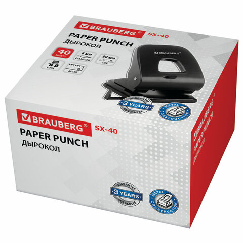 Дырокол BRAUBERG "SX-40" – предмет, который необходим в каждом офисе. С его помощью можно аккуратно пробивать отверстия в документах и подшивать их в папку. Дырокол BRAUBERG "SX-40" пробивает до 40 листов бумаги. Благодаря качественным пробойникам обеспечивает легкое и точное пробивание. Количество пробиваемых отверстий - 2, диаметр каждого - 6 мм, расстояние между отверстиями - 8 cм. Метка центрирования поможет ровно разместить листы, а ограничительная линейка - пробить отверстия в нужных местах. Оснащен контейнером для сбора мусора. Классический черный цвет отлично впишется в любой интерьер.