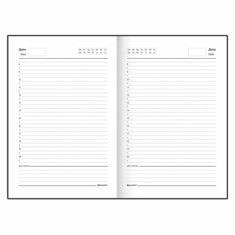 Недатированный ежедневник BRAUBERG формата А5 найдет применение как в офисе, так и на выездных деловых встречах. Внутренний блок содержит 160 листов офсетной бумаги плотностью 60 г/м2. Обложка из бумвинила и твердый переплет обеспечивают долгий срок службы. Ежедневник содержит коды городов и телефонную книгу. В конце имеются 12 страниц для записей и заметок Отличительная особенность – это поля, на которых можно проставить даты. Они не пропечатаны, поэтому владелец может отводить на каждый день сколько угодно листов и записывать все важные сведения.