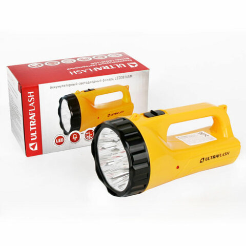Фонарь ULTRAFLASH электрический светодиодный ручной. Цвет фонаря - желтый с черным.
