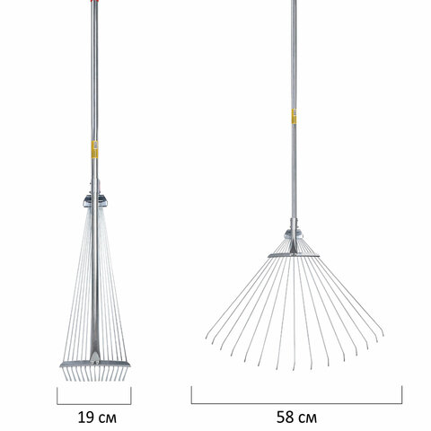 Грабли ГРАНДМАСТЕР предназначены для уборки территорий от травы, листьев и прочего мусора. Имеют 15 зубьев, длина которых может варьироваться в пределах от 15 до 58 см в зависимости от особенности убираемой местности. Длина в собранном положении – 115 см. Длина в разложенном состоянии – 150 см.