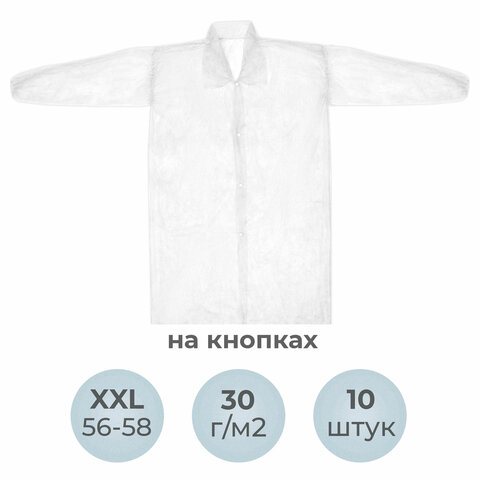 Нетканый халат ОПТИТРЕЙД с кнопочной застежкой и рукавами на резинке – это защитная одежда для работников, которые могут подвергаться химическому или биологическому воздействию, брызгам и испарениям. Удобный в использовании, прочный одноразовый халат из воздухопроницаемого спанбонда плотностью 30 г/м2 оснащен застежками на кнопках. Рукава на резинке защищают кожу рук и одежду от загрязнений. Этот одноразовый халат является важным средством специальной защиты для работников медицинских учреждений, салонов красоты, пищевых предприятий, лабораторий, клининговых компаний и складов. Нетканые халаты ОПТИТРЕЙД надежно защищают и обеспечивают максимальную свободу движений. Закажите их сейчас!