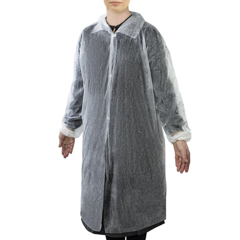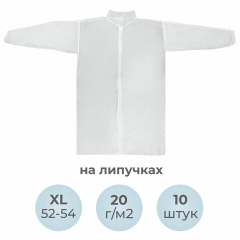 Халат СНАБЛАЙН из нетканого материала с застежкой на липучке и рукавами на резинке – защитная одежда для работников, подвергающихся риску химического или биологического воздействия, брызгам и испарениям. Комфортный в эксплуатации, прочный одноразовый халат изготовлен из воздухопроницаемого спанбонда плотностью 20 г/м2. Рукава на резинке препятствуют попаданию загрязнений на кожу рук и одежду. Одноразовый халат является важным средством специальной защиты для сотрудников медицинских учреждений, салонов красоты, пищевых предприятий, лабораторий, клининговых служб и складов. Комплект одноразовых халатов СНАБЛАЙН – это комфорт, гигиеничность и выгодная цена!