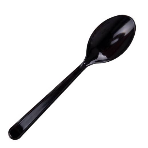 Ложка столовая. Цвет черный. В упаковке 50 штук. Одноразовые ложки удобны в использовании во время пикника, на природе, в походе или в офисе, где нет возможности мыть столовые приборы. Они также могут использоваться в пищевой промышленности, где предпочтительным выбором является утилизация после разового использования. Одноразовые ложки покупают для магазинов, предприятий общественного питания и для собственных нужд.