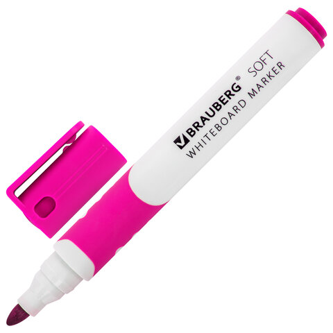 Высококачественный маркер BRAUBERG "SOFT" для белой доски. Предназначен для письма на досках с магнитно-маркерной поверхностью. Маркер для доски розового цвета обладает круглым пластиковым корпусом диаметром 16 мм. Корпус оснащен удобной прорезиненной зоной захвата для более удобного использования. Наконечник круглой формы обеспечивает толщину линии письма 5 мм, что позволяет писать крупным шрифтом, который будет хорошо виден. Основа чернил - спиртовая. Чернила быстро высыхают и не оставляют разводов, легко стираются сухой губкой. Изделие не перезаправляется. Цвет колпачка и прорезиненной вставки соответствует цвету чернил.