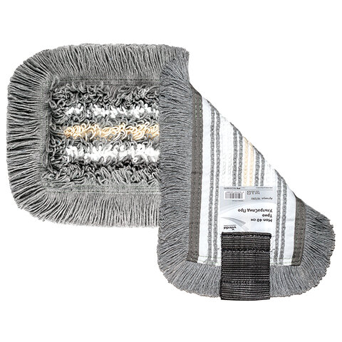 Прекрасно удаляет загрязнения из структурированных покрытий, подходит для всех типов полов. Применяется для мытья всех типов напольных покрытий без особых требований. Уникальная насадка с 3 видами волокон: – полиэстер (серое волокно) – отлично оттирает и удерживает загрязнения; – микроволокно (белое волокно) – собирает самые мелкие частицы грязи, придает поверхности естественный блеск и не отставляет разводов; – вискоза (бежевое волокно) – впитывает много влаги и грязи. Каждая петля независимо прошита, благодаря чему насадка не распускается. Применяется для мытья всех типов напольных покрытий без особых требований. Прекрасно удаляет загрязнения со структурированных покрытий.