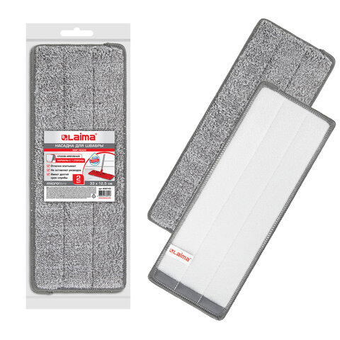 Плоская насадка МОП для швабры хорошо впитывает воду и не оставляет разводов при мытье полов и других покрытий. С такой насадкой уборка будет быстрой и комфортной. Насадка подходит для типовых швабр (карманы с одной стороны). Сменная насадка выполнена из микрофибры. Размер насадки – 33х12,5 см. Подходит для многих швабр (наборы для уборки) с системой липучек и одностороннего крепления (кармашки с одной стороны МОПа). Насадка из микроволокна обладает несколькими важными достоинствами: 1. Микроволокно в сухом виде в процессе протирания поверхности электризуется и притягивает к себе мельчайшие частицы пыли, а не разгоняет их по комнате. 2. При влажной уборке, благодаря способности микрофибрового волокна поглощать влагу в 7 раз больше самой ткани, насадка хорошо впитывает и удерживает влагу, забирает в структуру ткани любые загрязнения, не оставляет разводов. 3. Крученые петли работают как деликатный абразив и усиливают впитывающие свойства микрофибры. Использование насадки LAIMA позволяет очистить любые поверхности от пыли и грязи без использования химических средств.