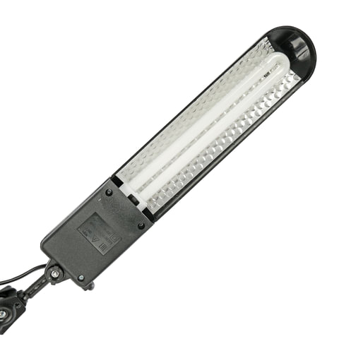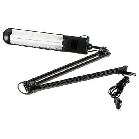 Настольный светильник на струбцине для люминесцентных ламп мощностью 11 Вт, что аналогично яркости 60 Вт лампы накаливания. Отсутствует акустический шум и мерцание. Рекомендован для работы за компьютером.