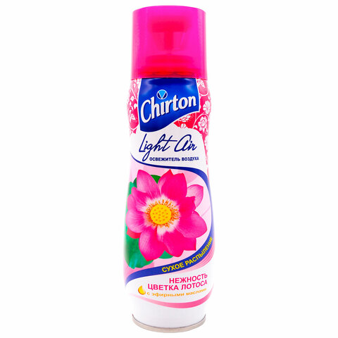 CHIRTON Light Air - это серия освежителей, созданных на основе натуральных эфирных масел с технологией сухого распыления. Мгновенно растворяется в воздухе и не оставляет брызг и пятен на полу и мебели. Не содержит озоноразрушающих веществ. Состав: пропан/бутан/изобутан (30% и более), растворитель (менее 5%), парфюмерная композиция (менее 5%), эфирные масла (менее 5%). ТУ 2389-026-34995425-05.
