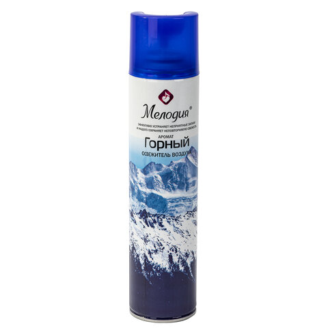 Освежитель воздуха МЕЛОДИЯ "Горный" быстро и эффективно устраняет неприятные запахи и освежает воздух в жилых и бытовых помещениях. Имеет приятный стойкий аромат, который надолго наполнит помещение свежестью. Предназначен для ароматизации воздуха в любом помещении. Современная формула распыления делает аромат более стойким и помогает быстро избавиться от неприятных запахов. Специальная конструкция распылителя обеспечивает более длительное использование освежителя. Объем – 300 мл.