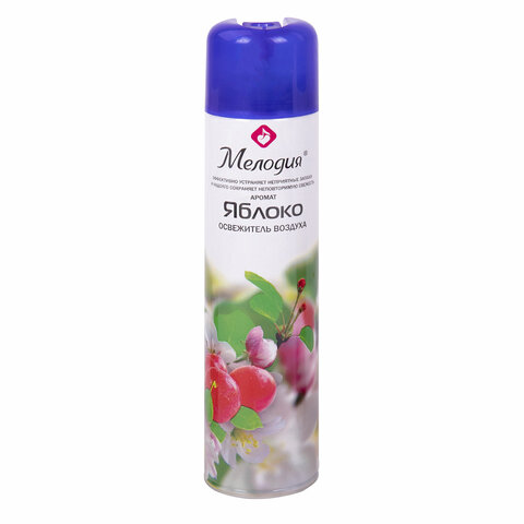 Освежитель воздуха МЕЛОДИЯ "Яблоко" быстро и эффективно устраняет неприятные запахи и освежает воздух в жилых и бытовых помещениях. Имеет приятный стойкий аромат, который надолго наполнит помещение свежестью. Предназначен для ароматизации воздуха в любом помещении. Формула сухого распыления делает аромат более стойким и не оставляет брызг и пятен на полу и мебели, которые могут возникнуть при использовании аэрозолей, помогает быстро избавиться от неприятных запахов. Специальная конструкция распылителя обеспечивает более длительное использование освежителя. Объем - 300 мл.