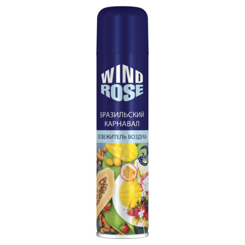 Освежитель воздуха WIND ROSE – прекрасный выбор для быстрого и эффективного устранения неприятных запахов в помещениях. WIND ROSE "Бразильский карнавал" подарит вашему дому свежесть и тонкий чувственный аромат манго и папайи! Способ применения: баллон встряхивать в течение 2-5 с. Распылять в разные стороны 2-3 с, направив струю вверх. При необходимости более длительного распыления упаковку периодически встряхивать. Использовать только по назначению! Перед использованием ознакомиться с маркировкой продукта. Применять при температуре не ниже плюс 10 °С. Состав: вода 30%; углеводородный пропеллент (пропан/бутан/изобутан смесь) 15-30%; < 5%: отдушка, НПАВ, консерванты, пропиленгликоль, линалоол, лимонен. ТУ 20.41.41-122-00204292-2017