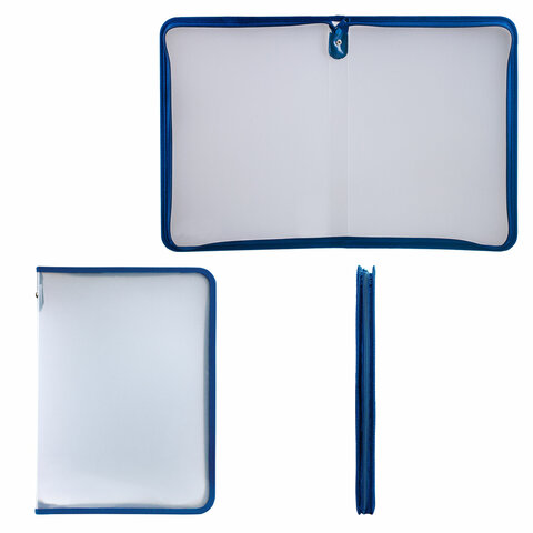 Папка на молнии BRAUBERG предназначена для комфортного хранения и транспортировки документов, тетрадей, различных мелких предметов. Незаменима в работе, учебе, в командировках, путешествиях и деловых поездках. Изготовлена из прочного прозрачного матового пластика толщиной 0,5 мм с диагональной фактурой. Формат А4 (325х230 мм). Надежный замок-молния защищает документы от механических повреждений, а также пыли и влаги. Цвет молнии - синий.