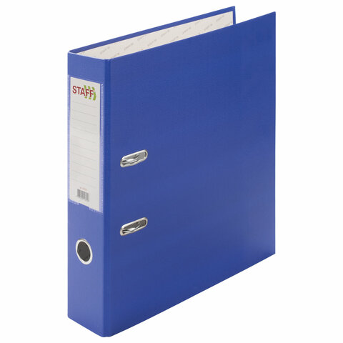 Папка-регистратор STAFF незаменима в работе для офисных сотрудников различных специальностей, направлений и должностей. Предназначена для хранения и ведения документации. Папка формата А4 с вертикальной ориентацией изготовлена из качественного износоустойчивого картона с ПВХ покрытием. Благодаря такому плотному покрытию допустима влажная уборка изделия. Ширина корешка в 70 мм позволяет разместить до 500 листов. Прорези для колец на внешней крышке позволяют оставаться папке закрытой даже при большом количестве бумаг, а надежный арочный механизм легко справляется с ежедневными нагрузками. Корешок снабжен этикеткой для маркировки содержимого, что позволяет структурировать информацию. Выполнена в синем цвете.