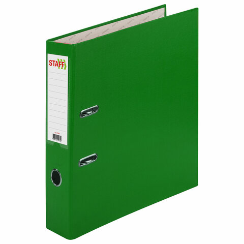 Папка-регистратор STAFF незаменима в работе для офисных сотрудников различных специальностей, направлений и должностей. Предназначена для хранения и ведения документации. Папка формата А4 с вертикальной ориентацией изготовлена из качественного картона с ПВХ покрытием. Благодаря такому плотному покрытию допустима влажная уборка изделия. Ширина корешка в 70 мм позволяет разместить до 500 листов. Прорези для колец на внешней крышке позволяют оставаться папке закрытой даже при большом количестве бумаг, а надежный арочный механизм легко справляется с ежедневными нагрузками. Корешок снабжен этикеткой для маркировки содержимого, что позволяет структурировать информацию. Выполнена в зеленом цвете. Храните документы организованно, не тратьте лишнее время на поиск нужного документа. С папкой-регистратором ваша работа станет еще эффективнее. Не откладывайте свое развитие на завтра – закажите папку-регистратор STAFF прямо сейчас!