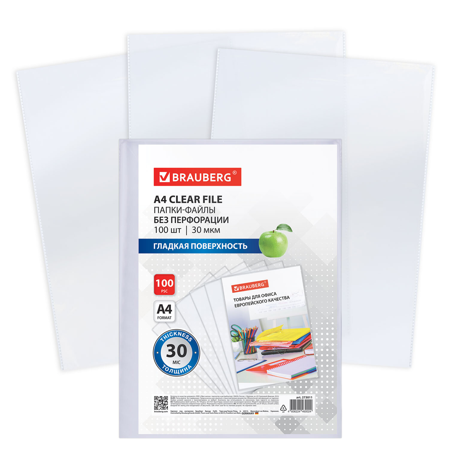 Папки-файлы без перфорации BRAUBERG предназначены для хранения и защиты бумажных документов от загрязнения и механических повреждений. Папки-файлы формата А4 БЕЗ ПЕРФОРАЦИИ с вертикальным размещением имеют гладкую поверхность и прочные швы. Файлы являются незаменимым атрибутом в офисе, позволяют систематизировать документы и обеспечивают их сохранность на долгое время. Изготовлены из прочной пленки толщиной 30 мкм. В комплект входит 100 штук.