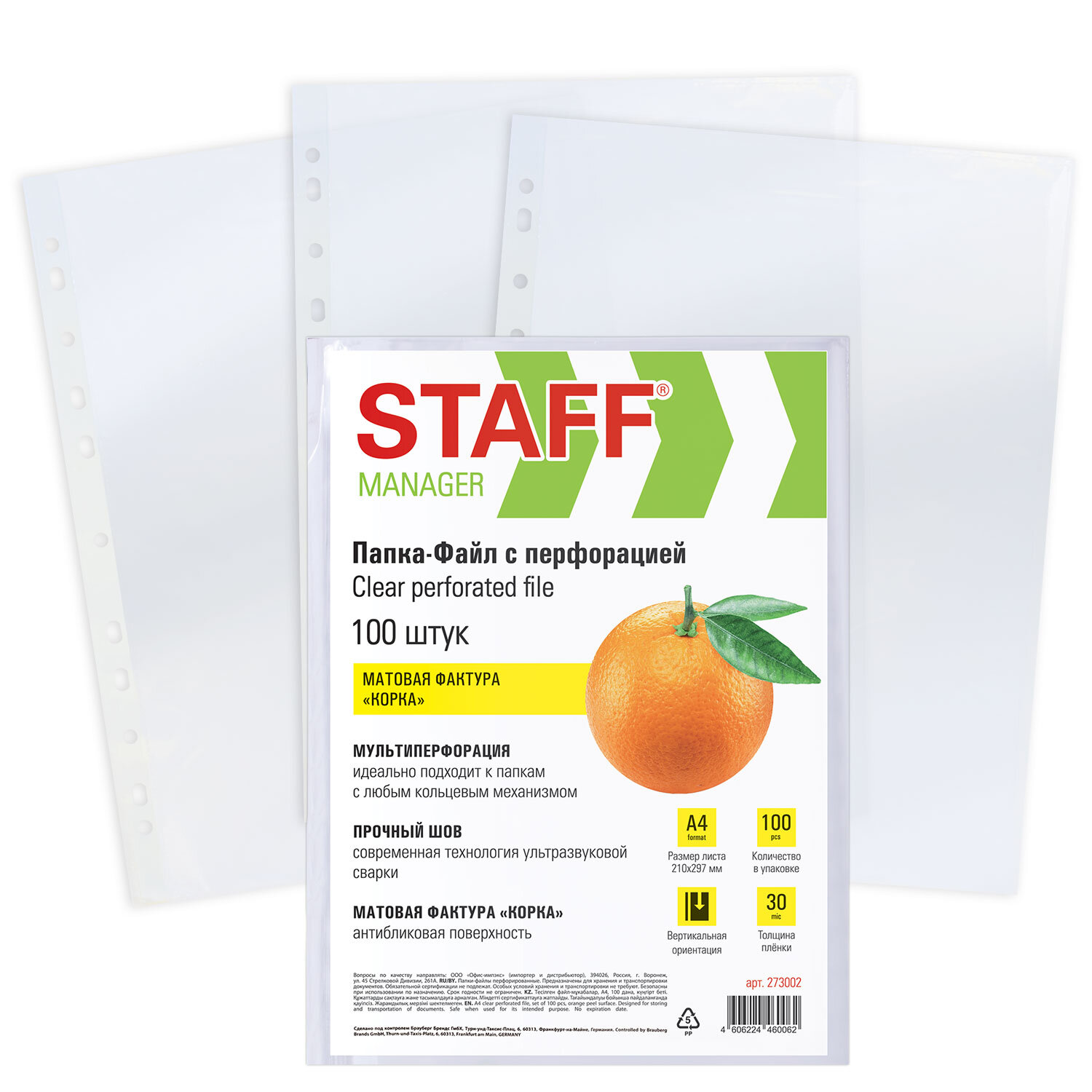 Перфорированные папки-файлы STAFF «ЭКОНОМ» обеспечивают сохранность бумажных носителей, защищают их от истирания, увлажнения, загрязнения, при этом обладают требуемыми параметрами прочности и прозрачности, позволяют систематизировать все важные документы. Перфопапки формата А4 с вертикальным размещением и универсальной перфорацией имеют матовую фактуру и прочные швы. Толщина пленки – 30 мкм, что подходит для хранения до 20 листов в 1 папке-файле. В комплекте 100 шт. Товар относится к сегменту "ЭКОНОМ" и имеет оптимальное соотношение цены и качества.