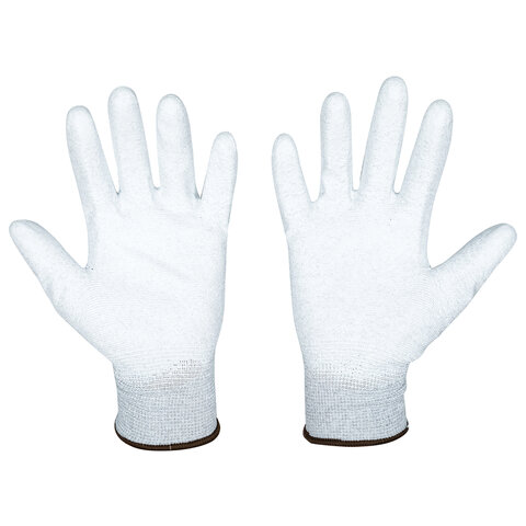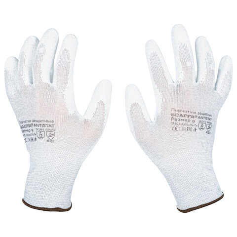 Перчатки SCAFFA Antistat PU с вплетением карбоновых нитей и полиуретановым покрытием имеют антистатические свойства, рассеивая электрический заряд. Функция Touch Screen позволяет пользоваться сенсорным экраном, не снимая перчатки.Антистатические нейлоновые перчатки серого цвета с вплетением карбоновых нитей и полиуретановым покрытием. Благодаря карбоновой нити перчатка имеет антистатические свойства, рассеивая электрический заряд. Тонкое полиуретановое покрытие одновременно очень прочное и чувствительное, а анатомическая форма перчатки снижает усталость рук при работе. - Не накапливает электростатический заряд, широкое применение в работе с микроэлектроникой. - Полиуретановое покрытие дает великолепную тактильную чувствительность. - Поддержка сенсорных экранов - Хороший воздухообмен, высокий комфорт в работе. Защитные свойства: Ми, Мп, Эс. EN388: 2016 – 4131Х. Стойкость к истиранию: уровень 4 (не менее 8000 циклов). Стойкость к порезу: уровень 1 (индекс не менее 1,2). Стойкость к разрыву: уровень 3 (50 Н). Стойкость к проколу: уровень 1 (не менее 20 Н). Соответствие стандартам: ТР ТС 019/2011; ГОСТ 12.4.252-2013; ГОСТ 12.4.183-91; ГОСТ Р ЕН 1149-5-2008.