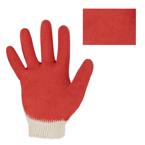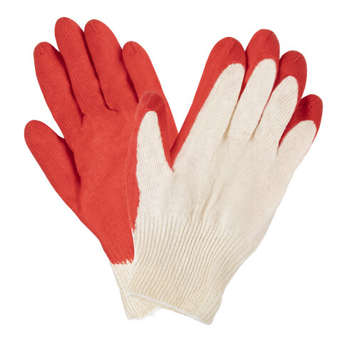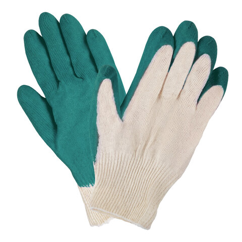 Перчатки трикотажные с одинарным латексным обливом ладони. Обладают высокой прочностью, предназначены для защиты от повреждений острыми углами, порезов арматурой, стеклом, не промокают при работе с влажными материалами (идеальны для укладка плитки). Изготовлены из хлопчатобумажной пряжи плотностью 100 текс с покрытием из поливинилхлорида с нанесением рисунка на внутреннюю сторону перчатки. Латексный облив помогает обеспечить плотный захват и предотвращает соскальзывание детали. Резинки на манжетах обеспечивают плотное прилегание перчатки к руке. Перчатки белого цвета имеют 13 класс вязки. Вес пары – 32-33 г. Поставляются в комплекте 5 штук в полиэтиленовой упаковке. Хлопчатобумажные перчатки LAIMA "ЛЮКС" используют в самых разных сферах производства для защиты от механических воздействий, агрессивных веществ, температур, искр или поражения электрическим током. Оформляйте заказ и присоединяйтесь к тысячам других счастливых пользователей!