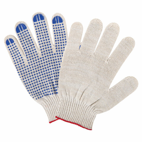 Хлопчатобумажные перчатки LAIMA "ЛЮКС" позволяют защитить руки от внешних воздействий в процессе физического труда. Изготовлены из хлопчатобумажной пряжи плотностью 116 текс с покрытием из поливинилхлорида с нанесением рисунка на внутреннюю сторону перчатки. Покрытие ПВХ помогает обеспечить плотный захват и предотвращает соскальзывание детали. Резинки на манжетах обеспечивают плотное прилегание перчатки к руке. Перчатки белого цвета имеют 10 класс вязки. Вес пары - 40-42 г. Поставляются в комплекте 100 штук в полиэтиленовой упаковке.