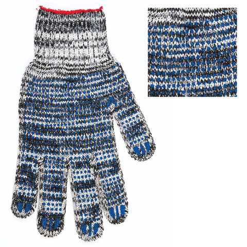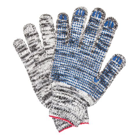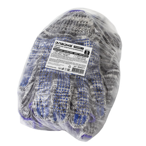 Хлопчатобумажные перчатки LAIMA "ПРОФИ" позволяют защитить руки от внешних воздействий в процессе физических нагрузок. Изготовлены из хлопчатобумажной пряжи плотностью 216 текс с покрытием из поливинилхлорида с нанесением рисунка на внутреннюю сторону перчатки. Покрытие ПВХ помогает обеспечить плотный захват и предотвращает соскальзывание детали. Резинки на манжетах обеспечивают плотное прилегание перчатки к руке. Перчатки серо-белого цвета имеют 7 класс вязки. Вес пары - 60-62 г. Поставляются в комплекте 5 штук в полиэтиленовой упаковке.