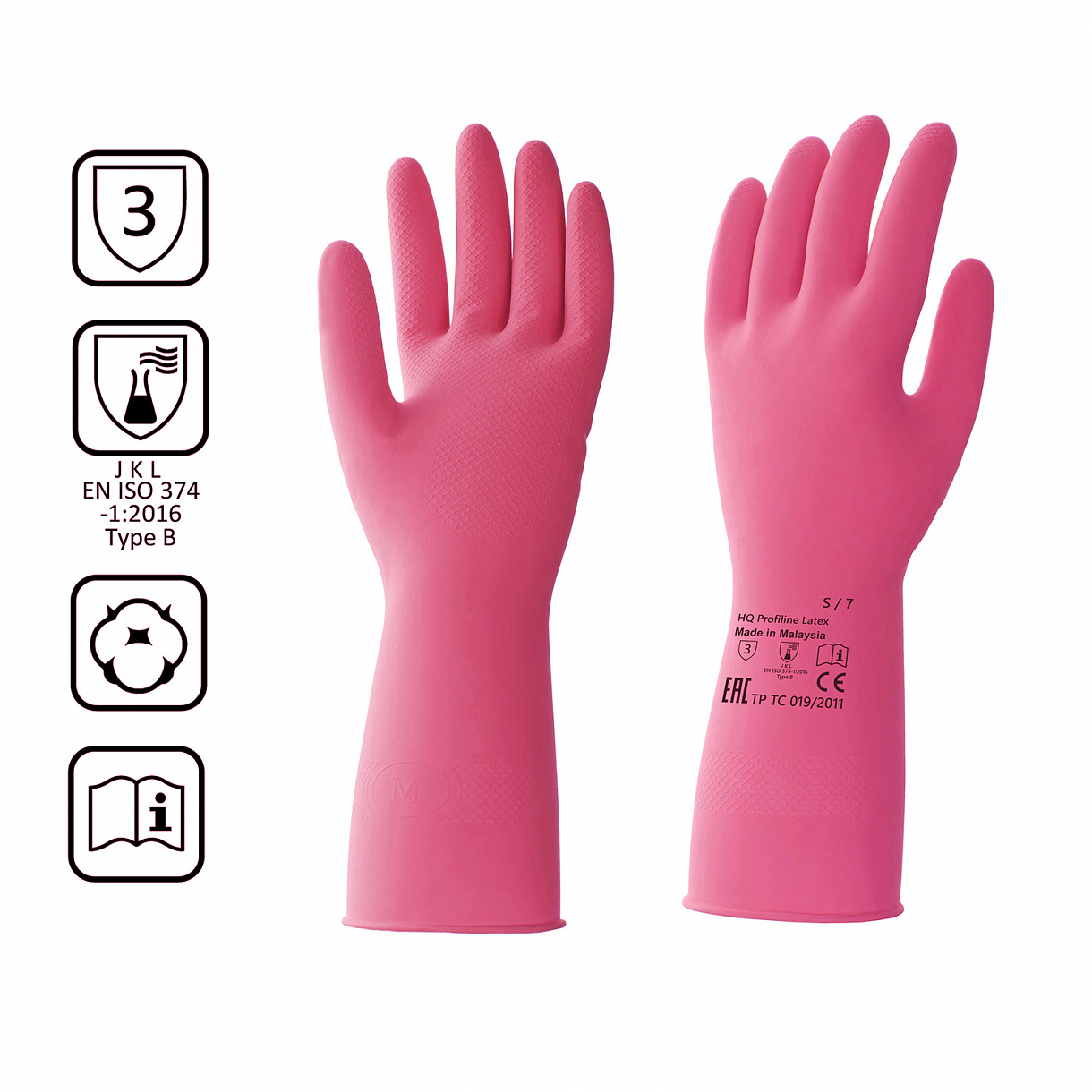 * Есть защита от кислот и щелочей, можно использовать с разведенными моющими средствами и дезинфектантами Размер: S/ 7 Длина: 30 см +/- 0,5 см Ширина ладони: 9 см +/- 0,5 см Толщина: 0,30 - 0,35 мм.