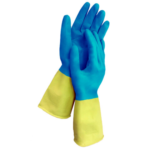 Универсальные особо прочные латексные перчатки LAIMA защищают руки от воздействия грязи, влаги, моющих и чистящих средств при любых бытовых и хозяйственных работах: мытье посуды, стирке белья, уборке, садоводческой работе и т.д. Особо прочные перчатки с высокой износостойкостью для долговременного использования. Изготовлены из прочного латексного материала, который защищает руки от внешних воздействий при проведении любых хозяйственно-бытовых работ. Текстура на ладони и пальцах помогает улучшить сцепление и препятствует выскальзыванию предметов из рук. Внутреннее хлопковое напыление позволяет надевать перчатки даже на влажные руки, а также обеспечивает комфорт во время использования. Перчатки пригодны для многократного использования. Нельзя использовать при работе с растворителями и электрическим током. Материал – латекс. Длина – 30 см. Цвет – сине-жёлтый. Упаковка – цветной пакет с европодвесом.