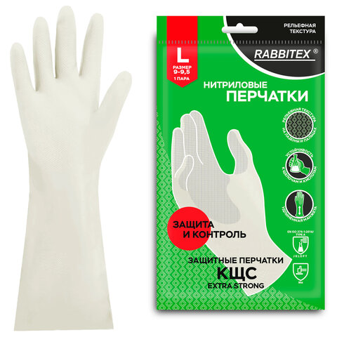 Нитриловые перчатки RABBITEX для защиты рук от загрязнений и химических факторов: кислот, щелочей, нефтепродуктов, растительных и животных масел и жиров, а также от воды и растворов нетоксичных веществ. Могут применяться в быту и на производстве. Перчатки нитриловые КЩС Extra Strong – это средство индивидуальной защиты рук от различных химических факторов: кислот концентрацией до 80% (К80), щелочей концентрацией до 40% (Щ40), сырой нефти (Нс), продуктов тяжелых фракций и нефтяных масел (Нм), продуктов легкой фракции (Нл), растительных и животных масел и жиров (Нж), а также от воды и растворов нетоксичных веществ. Благодаря повышенной плотности перчатки защищают от более высоких концентраций химических веществ. Рельефная текстура на ладони и пальцах обеспечивает надёжный захват влажных и промасленных предметов. Удлинённая манжета защищает руки и рукава одежды от загрязнений. Изготовлены в соответствии с EN ISO 374-1:2016 и ТР ТС 019/2011.