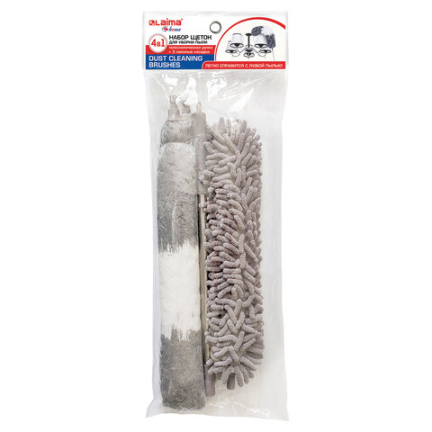 Пипидастр LAIMA HOME 4 в 1 – лучший помощник при уборке пыли на любой высоте. Идеален для удаления мелкого бытового мусора и пыли с люстр, светильников, шкафов, телевизоров. В комплекте – супер щелевая швабра. Щетки не оставляют разводов. Комплект для уборки включает в себя телескопическую стальную ручку (длина без насадки телескопической рукоятки имеет рабочий диапазон 0,4-2,08 м; длина телескопической рукоятки с насадками составляет от 0,82 до 2,52 м) В комплект входит 3 сменных насадки: насадка из микрофибры, щетка из синели и ультратонкая швабра. Пипидастр из микрофибры, поворачивающийся на 360°, идеально подходит для очистки труднодоступных мест от пыли и мелкого мусора. Щетка для пыли обладает моментальным впитыванием и антистатическим эффектом. Щетка из синели – это съемная износостойкая насадка без ворса, используемая при очистки поверхностей мебели или салона автомобиля. Ультратонкая узкая швабра легко гнется и идеально подходит для труднодоступных мест и щелей. Швабра для уборки легко разбирается. Насадки не требуют специального ухода: просто постирайте их моющим средством и высушите. Метелка для пыли на ручке имеет специальное отверстие для подвешивания. Щетка для уборки пыли из микрофибры пипидастр отличный помощник любой хозяйки. Щетки для уборки мелкого бытового мусора с подоконников, шкафов, телевизоров не оставляют разводов. Электростатическая щетка для пыли с мягким ворсом молниеносно удаляет даже самую мелкую пыль с плазмы, клавиатуры и пианино. Мыть ее следует без мыла в теплой воде. Чтобы метелка для пыли восстановила свои свойства вода должна быть около 30-40 °С. А в случае, если ваша щетка для уборки пыли потеряла свои электростатические свойства, необходимо помыть ее с шампунем и после высыхания натереть об полиэтиленовый пакет или шерсть. Когда перед вами стоит задача генеральной уборки в дело идет метелка для уборки труднодоступных мест. Она поможет смахнуть пыль со шкафов, вычистить промежутки между стеной и шкафом. Для кухни нужна щетка-сметка с ручкой, которая позволяет эффективно очищать труднодоступные места, а также углы и ниши в шкафчиках, вытяжку и вентиляцию. Щетка от пыли сметает пыль с мебели, батарей, окон, зеркал, наличников дверей. Сметка для пыли с ручкой изготовлена из мягкого пушистого волокна 80 мкм, она притягивает частицы пили любых размеров. На нее можно намотать паутину, почистить любое место в квартире.