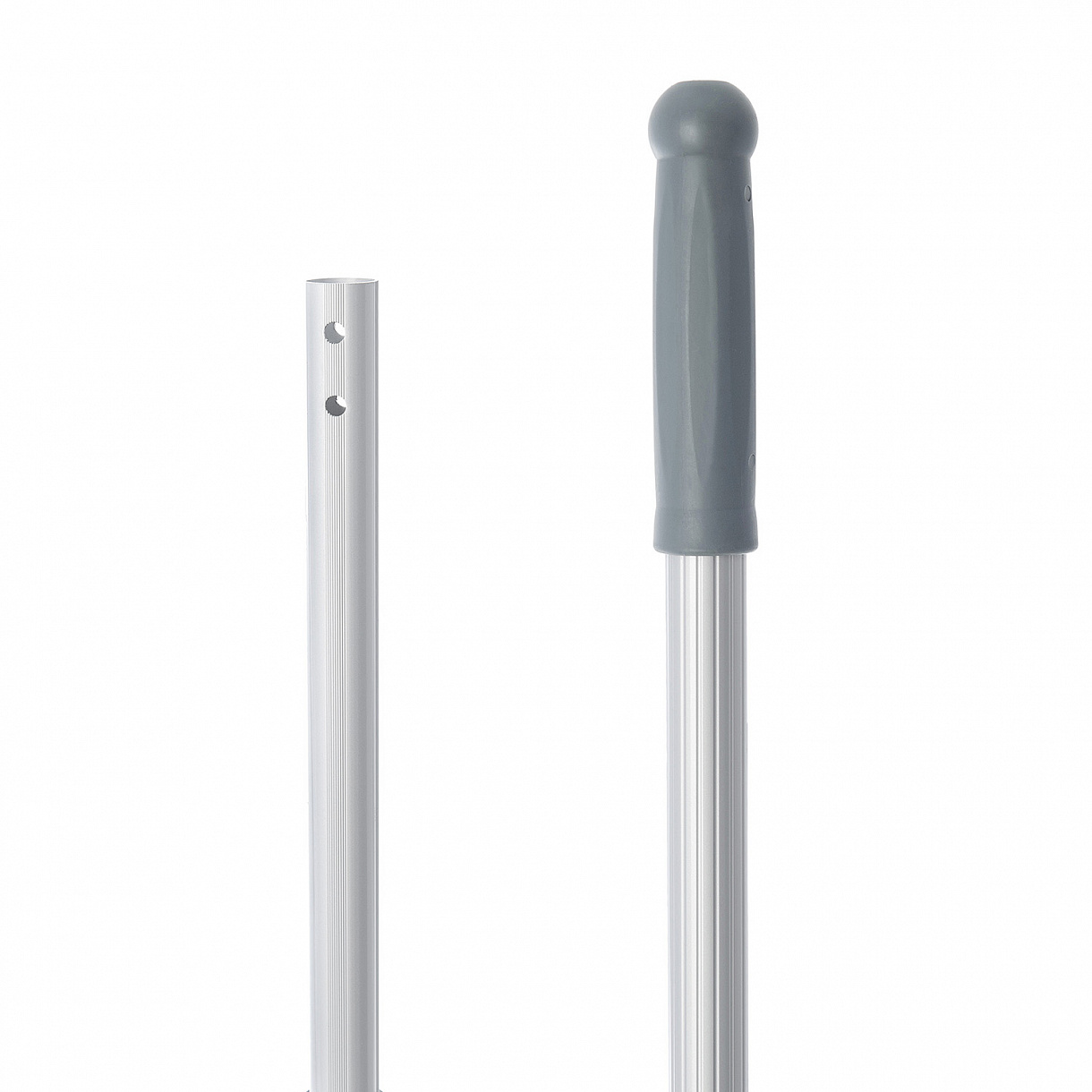 * Есть специальная полипропиленовая вставка для комфортного захвата посредине ручки для эргономичной работы в течение длительного времени Размер: в сложенном виде - 103,5 см, В разложенном: 182 см. Диаметр 23 мм. Вес 443+/-10 г. Тип крепления: защелка. Состав: алюминий, полипропилен. Цвет: полипропилен серый
