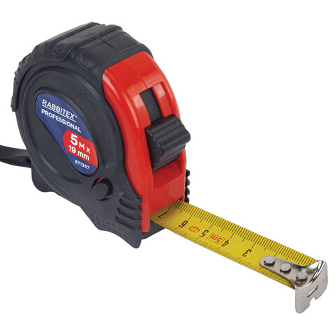 Рулетка RABBITEX применяется для измерения размеров поверхностей и расстояний. Благодаря эргономичному дизайну и высокому классу точности измерений рулетка станет незаменимым помощником в быту и профессиональной деятельности. Рулетка RABBITEX проста в обращении, обладает повышенной износостойкостью и долгим сроком службы. Корпус рулетки из прочного пластика с прорезиненным покрытием обеспечит защиту инструмента от повреждений при случайном падении. Измерительная лента с метрической шкалой II класса точности изготовлена из прочной углеродистой стали, устойчивой к заломам, и оснащена зацепом для удобства измерений. Рулетка оснащена ремешком для ношения на запястье, а также металлической клипсой для крепления на поясе. Эргономичный дизайн с тремя фиксаторами измерительной ленты позволят использовать рулетку даже одной рукой. Материал корпуса: ABS-пластик с ПВХ-покрытием. Цвет корпуса: красный с чёрным покрытием. Материал измерительной ленты: углеродистая сталь (S50C). Размеры измерительной ленты: длина 5 метров, ширина 19 миллиметров. Система измерения: метрическая. Цвет ленты: жёлтый. Фиксаторы: вертикальный, боковой, нижний. Упаковка: бумажная карта с европодвесом. С рулеткой RABBITEX проводить измерение длины и расстояний станет проще, чем когда-либо!
