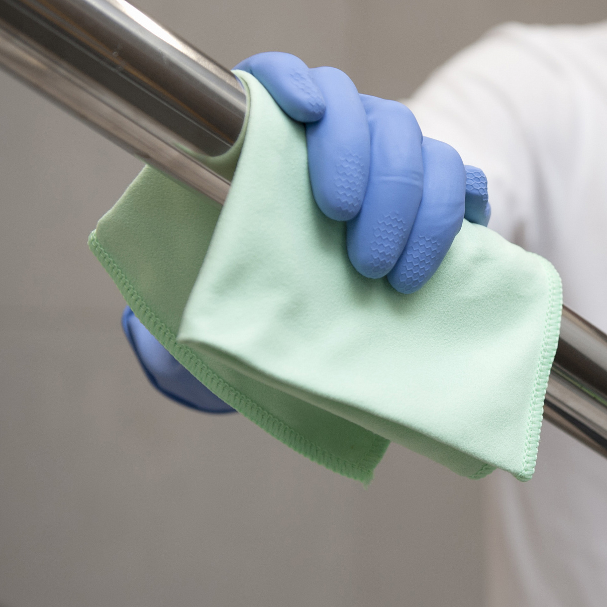 Вес без индивидуальной упаковки: 23 +/-2 г. Размер: 30 х 40 см. Плотность: 170 г/м2 500 циклов стирки. Впитываемость 400%. Подходит для гладких, матовых и глянцевых поверхностей. Устойчивость к щелочным и кислотосодержащим моющим средствам; устойчивость к дезинфектантам; устойчивость к автоклавированию.* Работает в сухом и в маловлажном состоянии