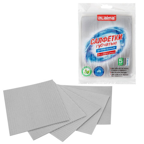 Губчатые салфетки LAIMA – ваш идеальный помощник в уборке! Используются во влажном виде, супервпитывающие, не оставляют разводов, обеспечивают надежную чистоту в вашем доме. Комплект губчатых салфеток LAIMA – 5 шт. Размер салфетки – 15х18 см. Цвет в комплекте – серый. Супер впитывающие салфетки из 100% целлюлозы используются для уборки на кухне и в ванной комнате, для мытья посуды, стекол и зеркал, для протирания любых поверхностей и даже для ухода за автомобилем. Салфетки не ломаются и не крошатся, сохраняют свою форму после многократного использования, что делает их идеальными для любых задач. Впитывают большой объем жидкости.