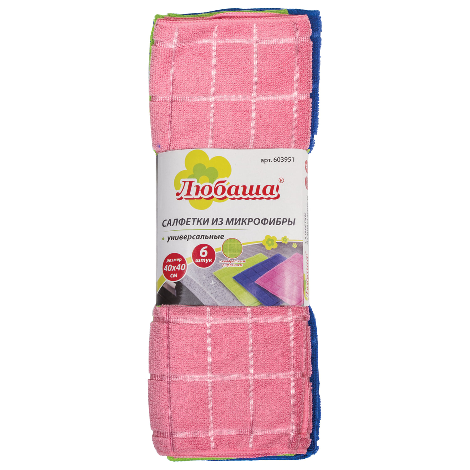Универсальные салфетки ЛЮБАША из микрофибры применяются для сухой и влажной уборки. Отлично впитывают влагу, масло, грязь. Не оставляют разводов и ворса. Не царапают деликатные поверхности, такие как экраны и ЖК-мониторы, стекло, полированную мебель. Повышенная плотность 220 г/м2 обеспечивает высокую износостойкость и экономичный расход. Размер - 40х40 см. Сохраняют свои свойства даже при многократном применении. Поставляются в пакете с подвесом в количестве 6 штук.