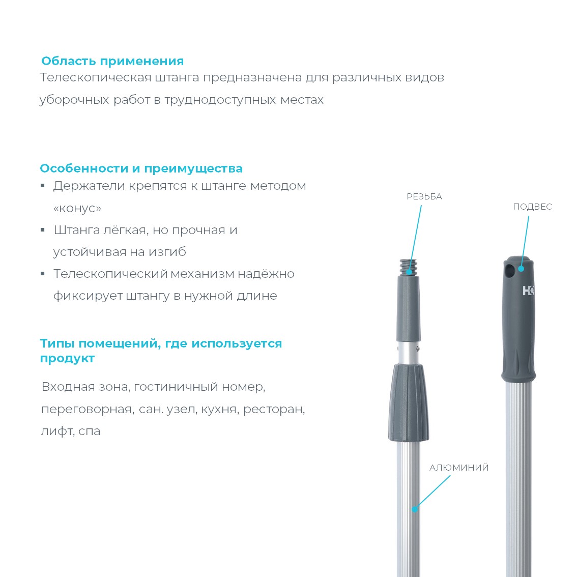* Телескопическая штанга предназначена для различных видов уборочных работ в труднодоступных местах