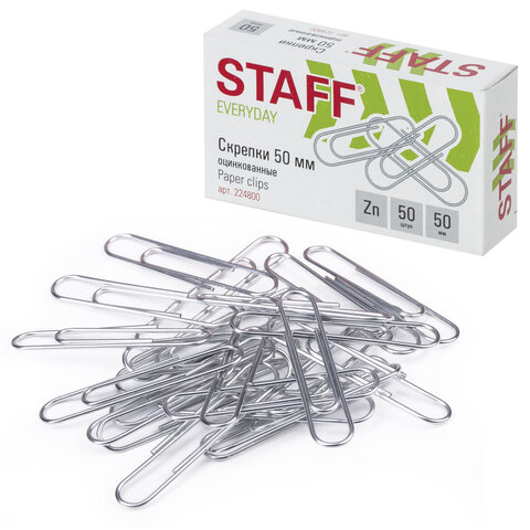 Скрепки STAFF - это незаменимые помощники для временного скрепления небольшого объема документов. Большие скрепки изготовлены из стали, имеют классическую овальную форму и цинковое покрытие. Длина скрепки составляет 50 мм. Не окисляются и не повреждают документы. 50 штук в картонной коробке.