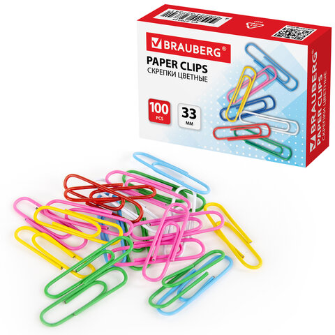 Скрепки BRAUBERG незаменимы в случаях, когда нужно соединить несколько бумаг, например, все листы договора. Скрепки изготовлены из стали, имеют классическую овальную форму и цветное пластиковое покрытие. Длина скрепки составляет 33 мм. Не окисляются и не повреждают документы. 100 штук в картонной коробке.