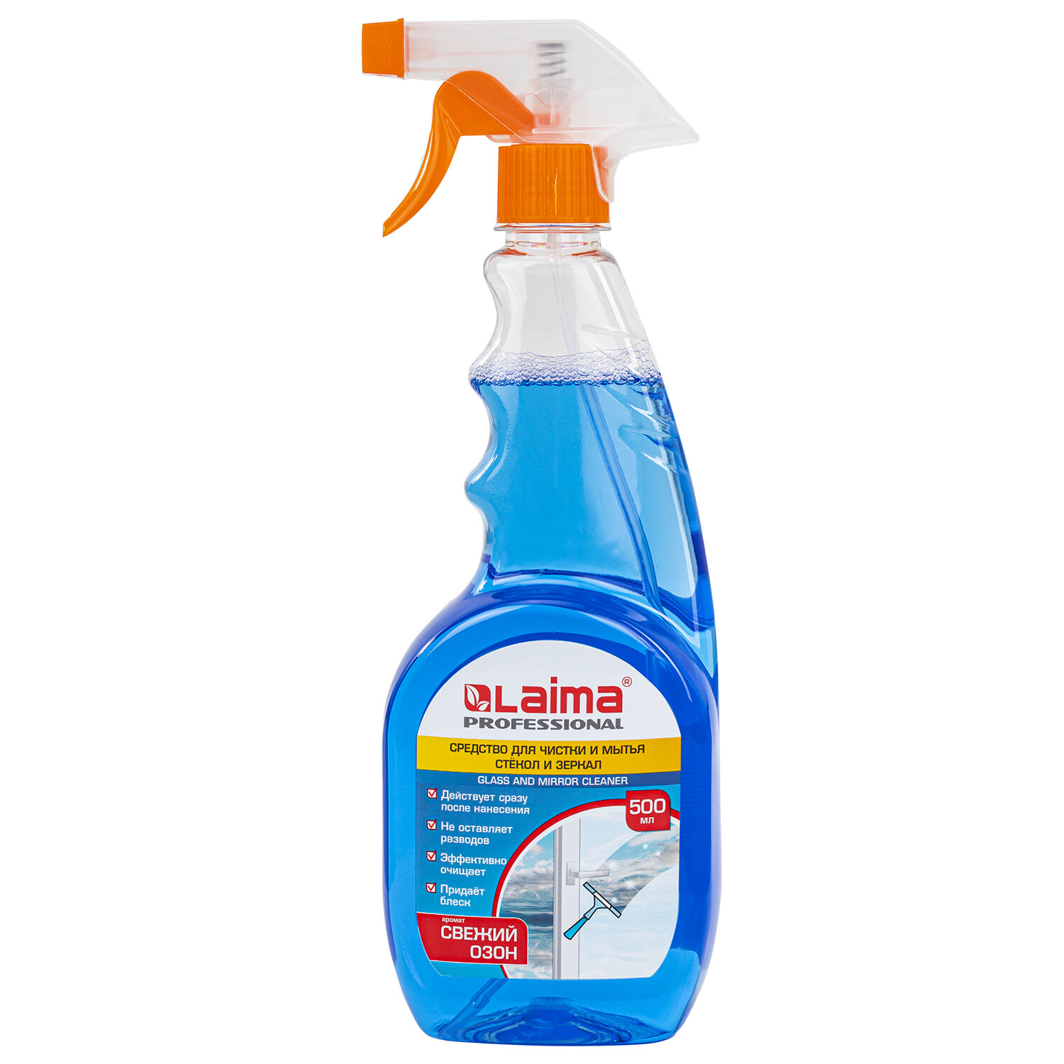 Средство для мытья стекол и зеркал LAIMA PROFESSIONAL эффективно для мытья оконных стекол, витрин, зеркал, автомобильных стекол, кафеля, хрусталя, фарфора, фаянса, для протирки экранов телевизоров и мониторов. Средство для мытья стекол и зеркал Лайма Professional, содержащее изопропиловый спирт, представлено в удобной упаковке объемом 0,5 л, снабженной распылителем. Состав подходит также для обработки деревянных, пластиковых, выполненных из мрамора поверхностей. Характеристики: - устраняет без следа пыль, загрязнения, - не оставляет разводов, - является эффективным против жирных пятен, в том числе застарелых, - обладает антистатическим эффектом, - быстро сохнет, - придает поверхностям блеск, - имеет ненавязчивую озоновую отдушку. В составе средства нет аммиака, метанола. Соответствует ТУ 2383-014-18461799-01.