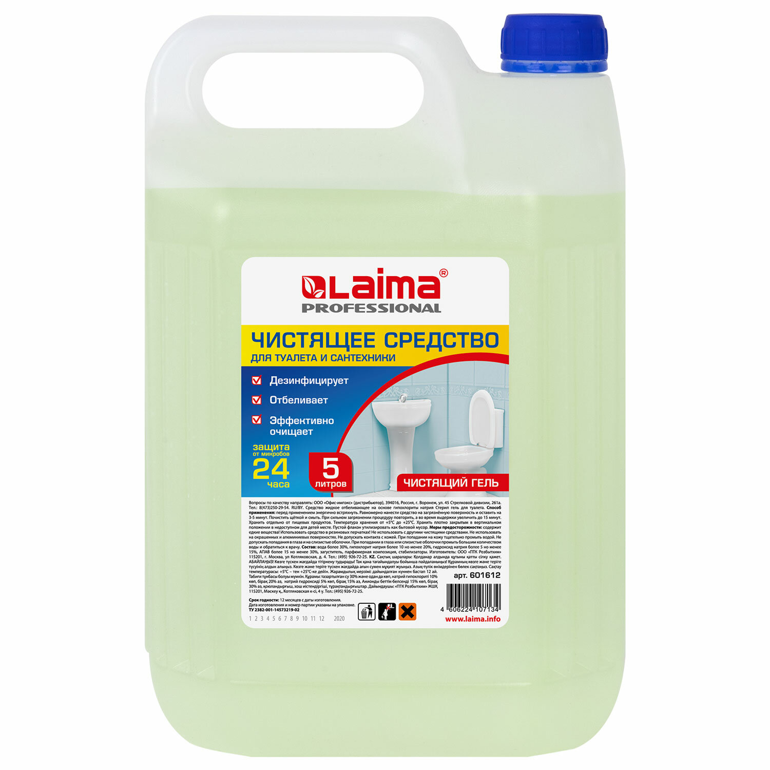 Концентрированное чистящее средство LAIMA PROFESSIONAL. Идеально подходит для уборки туалета и чистки сантехники и смежных поверхностей.