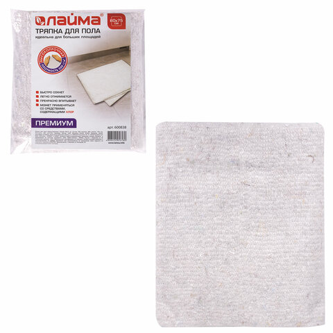 Тряпка для мытья пола LAIMA обладает высокой прочностью и увеличенным сроком службы, отлично впитывает, отжимается и быстро сохнет. Может применяться с бытовыми моющими средствами, включая хлорсодержащие. Выполнена из хлопка, вискозы и полиэстера (холстопрошивное полотно). Компактный размер 60х75 см. Долгий срок службы обеспечивает плотность 200 г/м2. Индивидуальная упаковка.