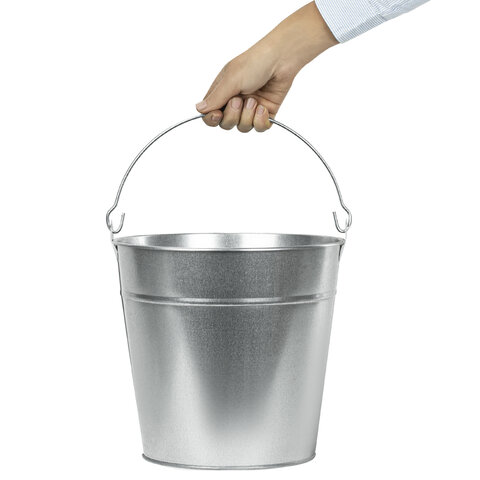 Ведро изготовлено из оцинкованной стали. Параметры ведра: диаметр нижний – 21 см, диаметр верхний – 28 см, высота ведра – 26 см. Оцинкованное хозяйственное ведро подойдет для бытовых нужд и строительства. Металл надежно защищен от коррозии толстым слоем цинка. Оцинкованное покрытие предотвращает появление коррозии, продлевая тем самым срок службы изделия. Дополнительная прокатка вальцами повышает жесткость конструкции. Места бокового соединения и фиксации дна к конусообразной части изделия надежно прокатаны со специальной пастой для спайки и герметизации.