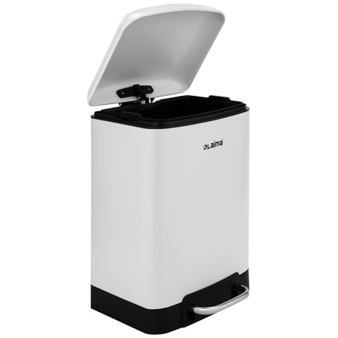 Ведро мусорное с педалью LAIMA ULTRA – идеальный выбор для тех, кто ценит качество и эстетику. Предназначено для поддержания чистоты в доме или офисе. Изготовлено из металла с порошковым покрытием, что обеспечивает максимально долгий срок службы. Ведро устойчиво благодаря антискользящим вставкам. Оборудовано удобной педалью для открывания, позволяя вам выбрасывать мусор, не прикасаясь к ведру. Благодаря встроенному доводчику крышка закрывается плавно и бесшумно. Крышка плотно прилегает к ведру, препятствуя распространению запахов. Внутреннее съемное пластиковое ведро на 12 л имеет специальное отверстие на задней стенке для фиксации мусорного пакета. Объем рекомендуемого мешка – 30 л. Размеры: 40х25,5х27 см. Цвет внешнего ведра: белый, матовый с черным основанием. Цвет внутреннего ведра: черный.
