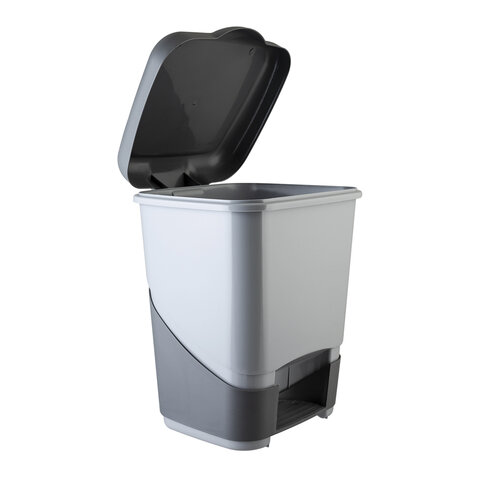 Стильный и удобный современный контейнер для мусора с педалью и откидывающейся крышкой станет незаменимым помощником как в офисе, так и дома. Имеет устойчивое основание. Конструкция не имеет внутреннего ведра, корпус является емкостью для сбора мусора.