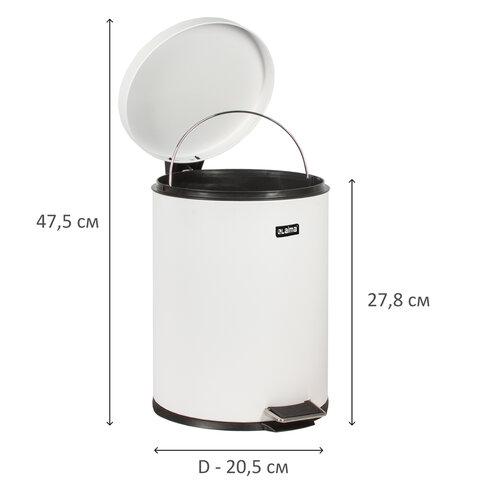 Ведро-контейнер для мусора LAIMA "Classic" предназначено для утилизации отходов, помогает поддерживать порядок и чистоту как в офисном помещении, так и на предприятиях и в различных учреждениях. 5 л – подходящий объем при небольшой проходимости. Оборудовано педалью для открывания. Крышка плотно прилегает, тем самым препятствуя распространению запахов. Внутреннее съемное пластиковое ведро имеет удобную рукоятку для извлечения. Изготовлено из нержавеющей стали со специальным антикоррозийным покрытием, что обеспечивает максимально долгий срок службы. Ведро устойчиво благодаря антискользящему основанию. Объем рекомендуемого мешка – 10 л. Контейнер для мусора в белом цвете с глянцевым покрытием имеет компактные размеры (28х20,5х20,5 см) и отлично впишется в любой интерьер.